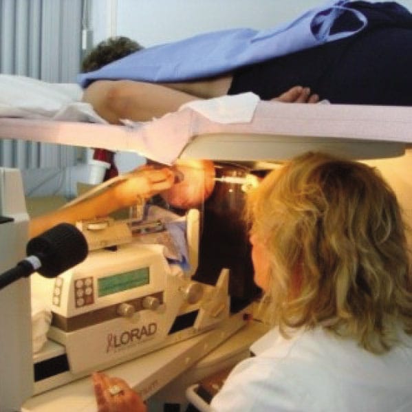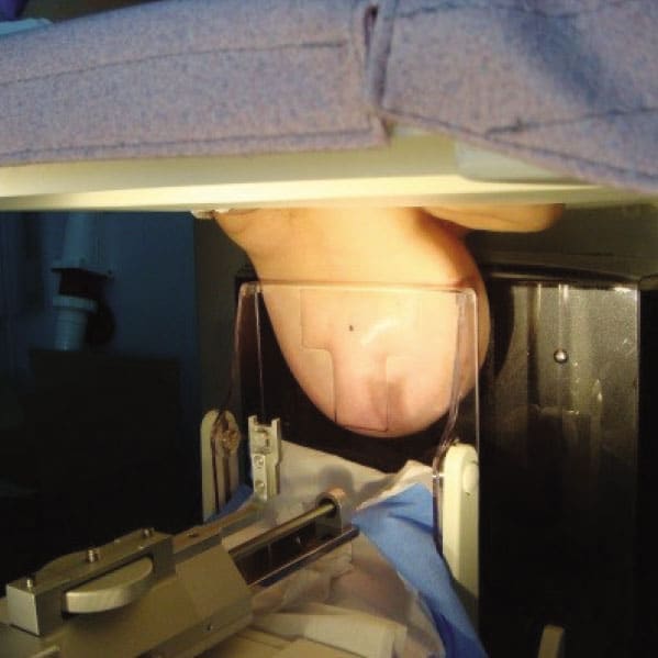 Stereotaxic vacuum-assisted biopsy is performed under the control of a mammogram (x-ray), and a specially designed biopsy system is necessary to perform this method. This system can be incorporated into the mammograph, subsequently upgraded to the existing mammograph, or it can be a separate unit (a specially constructed system consisting of: a bed for the patient attached to the digital mammograph), with a special workstation that gives commands and controls the needle during intervention , as well as a vacuum biopter. In our conditions, in everyday practice, VAB interventions, due to their complexity, duration, use of ionizing radiation and high cost, are used in cases where changes cannot be reliably biopsied using ultrasound, which are the most common areas of microcalcifications, with or without an underlying tumor mass.